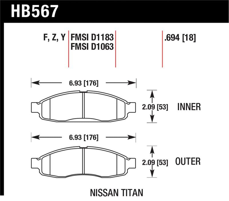 Hawk 04-06 Infiniti QX56 / 05-06 Armada / 04 Pathfinder / 04-07 Titan LTS Street Front Brake Pads
