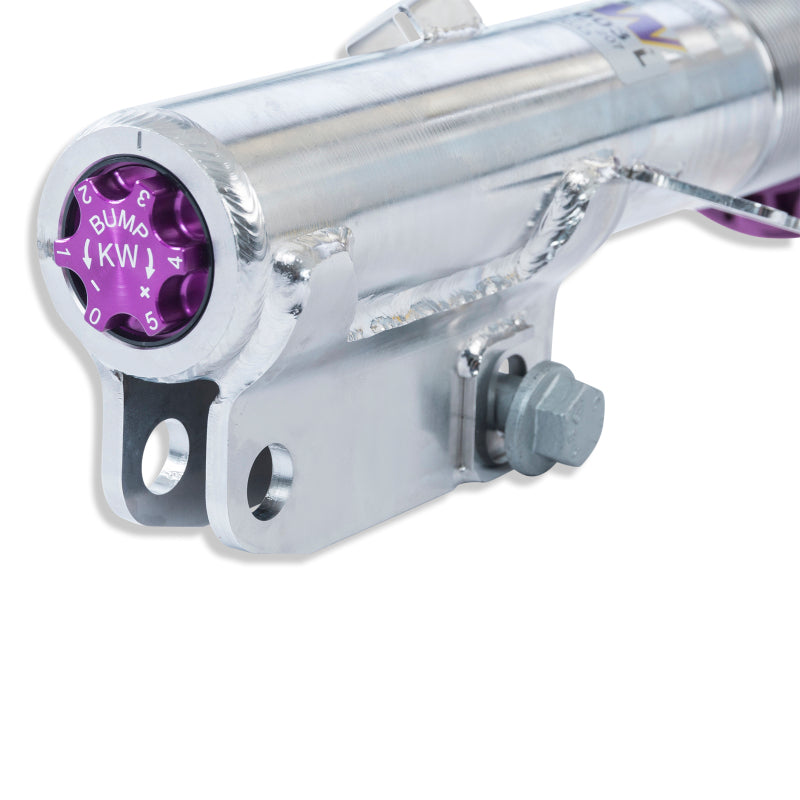 Cutting-edge motorsports technology for more performance on the road. Like every suspension product developed by KW automotive, the suspension manufacturer, and manufactured in Germany, the KW V3 Coilover suspension kit also provides a significant plus in safety reserves in road traffic. Thanks to the chassis with its high-quality dampers, springs, and elastomer spring elements, pitching and rolling movements during load changes such as evasive maneuvers, cornering, acceleration, and braking are significantly reduced. The braking distances are also shortened. Thanks to improved support and feedback, drivers not only feel safer but driving in everyday life becomes even safer. With compression and rebound stage damping, that can be set separately and independently of each other, the damper setup can be customized to your personal driving preferences or vehicle changes such as weight, tire characteristics, or altered vehicle rigidity. True performance optimization is only possible with this unique, patented system. For example, this allows the compression damping force to be increased and get more grip from the tires, to improve cornering behavior and reduce squat without simultaneously altering the rebound stage damping which is optimally matched to the spring rate, a scenario which results in reduced grip and the associated loss of performance. The KW V3 coilover kit is the ideal t ool for performance-oriented drivers and experienced tuning enthusiasts who place a strong emphasis on the overall performance of their suspension. The Variant 3 features patented TVR-A and TVC-A technology that provides separately adjustable rebound and compression damping. The extensive adjustment range of the independently configurable rebound and compression make it easy to directly influence the steering behavior, directional stability, grip and handling characteristics for confident and repeatable results at the limit of driving dynamics.
